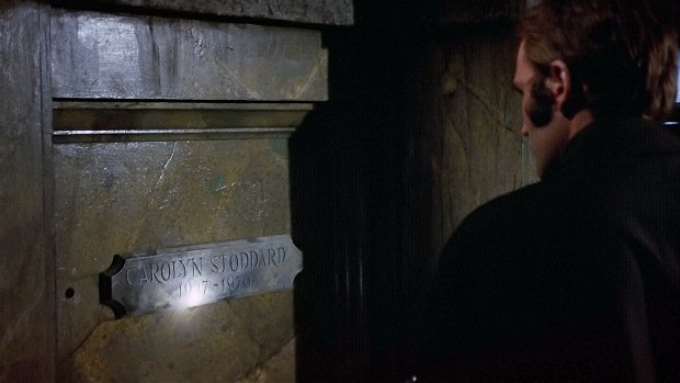 ) but he only makes the briefest of hesitations before he moves right to the mausoleum, so there's no bowing of his head and no perception that he says a silent prayer for Carolyn - and from this point on things dramatically diverge from the script because Todd walks up to the mausoleum to -
