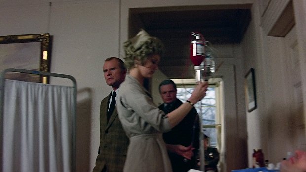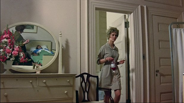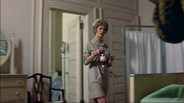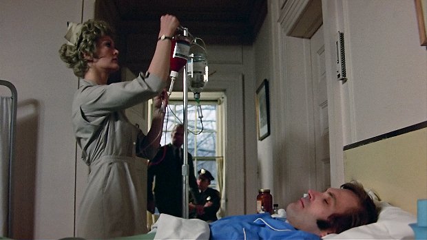 And when it comes to the dialogue, the descriptions, and the directions, most things are actually quite different - the scene opens, not on a shot of Todd in bed, but on a shot of the hospital room with Julia and Todd reflected in a mirror across the room and a nurse appearing at the door across the room as she carries a bottle of blood -