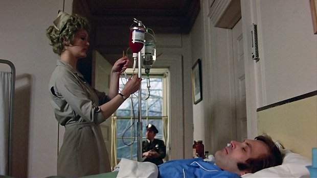 - and as the nurse proceeds to work with the transfusion bottle as Todd rests in his bed, through the already opened door a deputy can be seen -