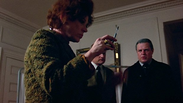 But again as we know, that's not quite how things play in the film because things in the film are taking place inside the mausoleum. But even at that, Todd doesn't back away after he expresses his shock - and next we see Carolyn standing there as she begins by -