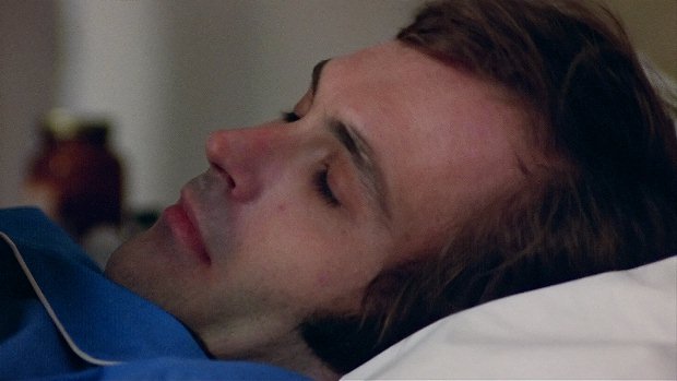 CLOSE SHOT of Todd lying in bed in a semi-delirious
