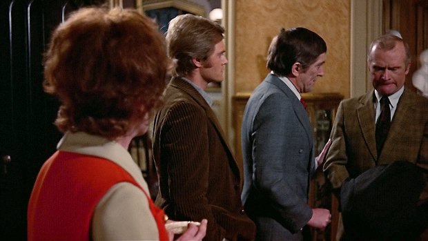 -  turned to shock - but after tells Jeff that's good, there's no need for Roger to cross to Barnabas because it's quite obvious that Barnabas has already been standing beside Roger - and despite DC's notation, there's is no truck in for a close-up of Julia's reaction because, as Roger actually delivers today's quote as "Barnabas, I think you'd better stay the night at Collinwood, too", and as can be seen in today's capture, the camera stays with the same shot as Julia turns to look at the three men -