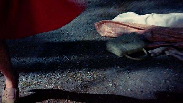 - it ZOOMS into the bushes to a PAIR OF FEET - MALE