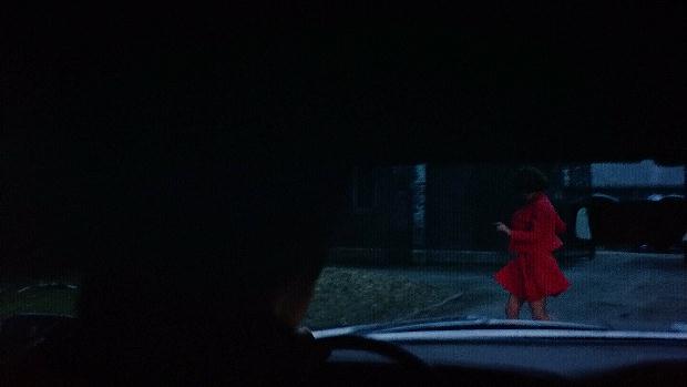 And when it comes to the differences in the directions and descriptions, we can barely hear the sound as the car skids to a stop, and because it's so dark, we can barely see Jeff as he gets out of the car - and because Daphne is already collapsing as Jeff calls out her name, we don't see her turn, we don't see her see him, we don't hear her scream, nor does she try to run from him.
