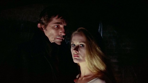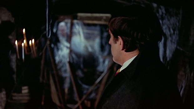 It's probably a good thing Nancy Barrett has her arm over her chest or Jonathan Frid might have gotten an eyeful!