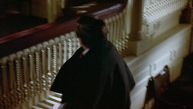 - while she actually explains "He just kept telling me that I was in danger", the camera switches to Barnabas -