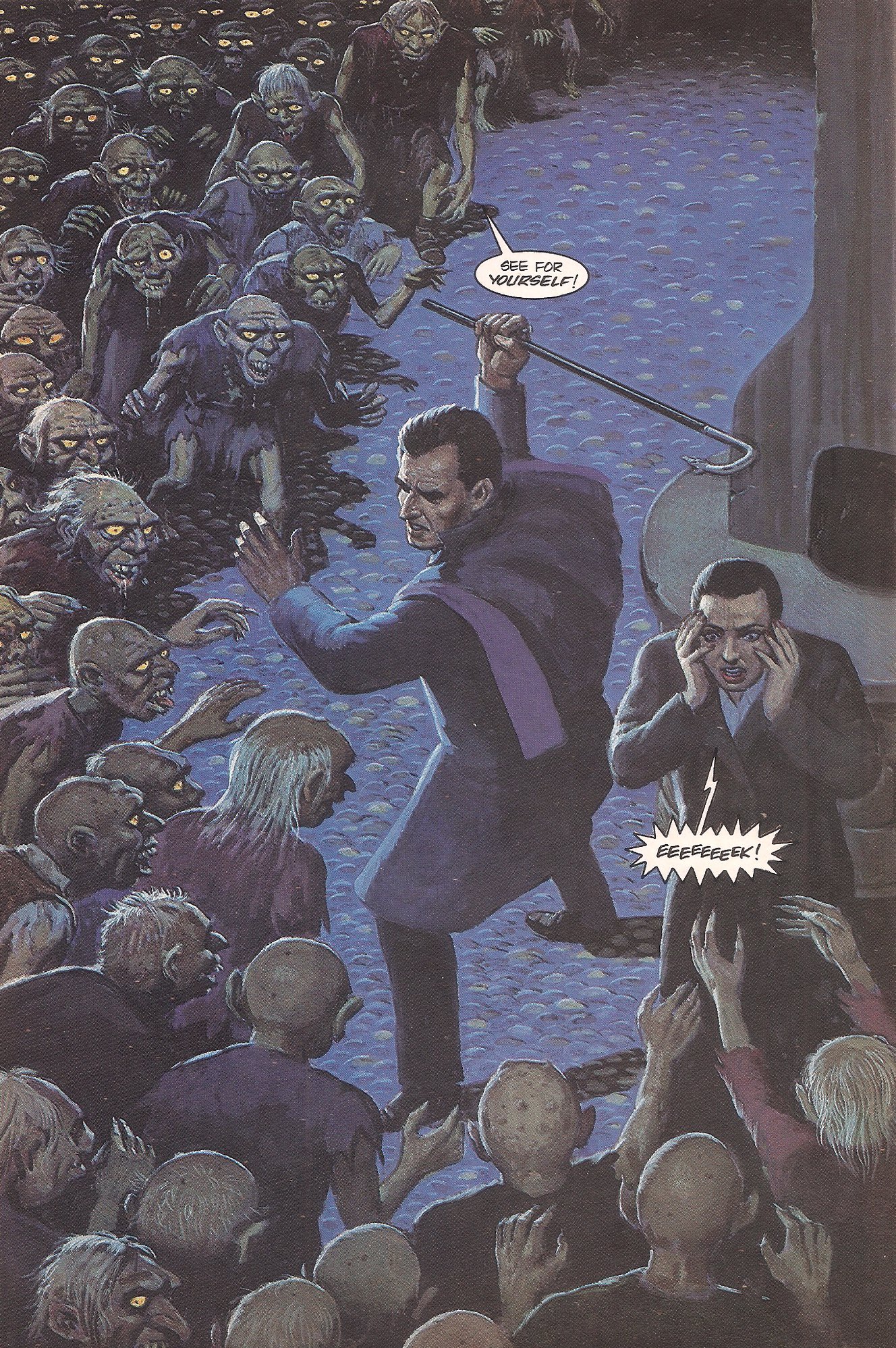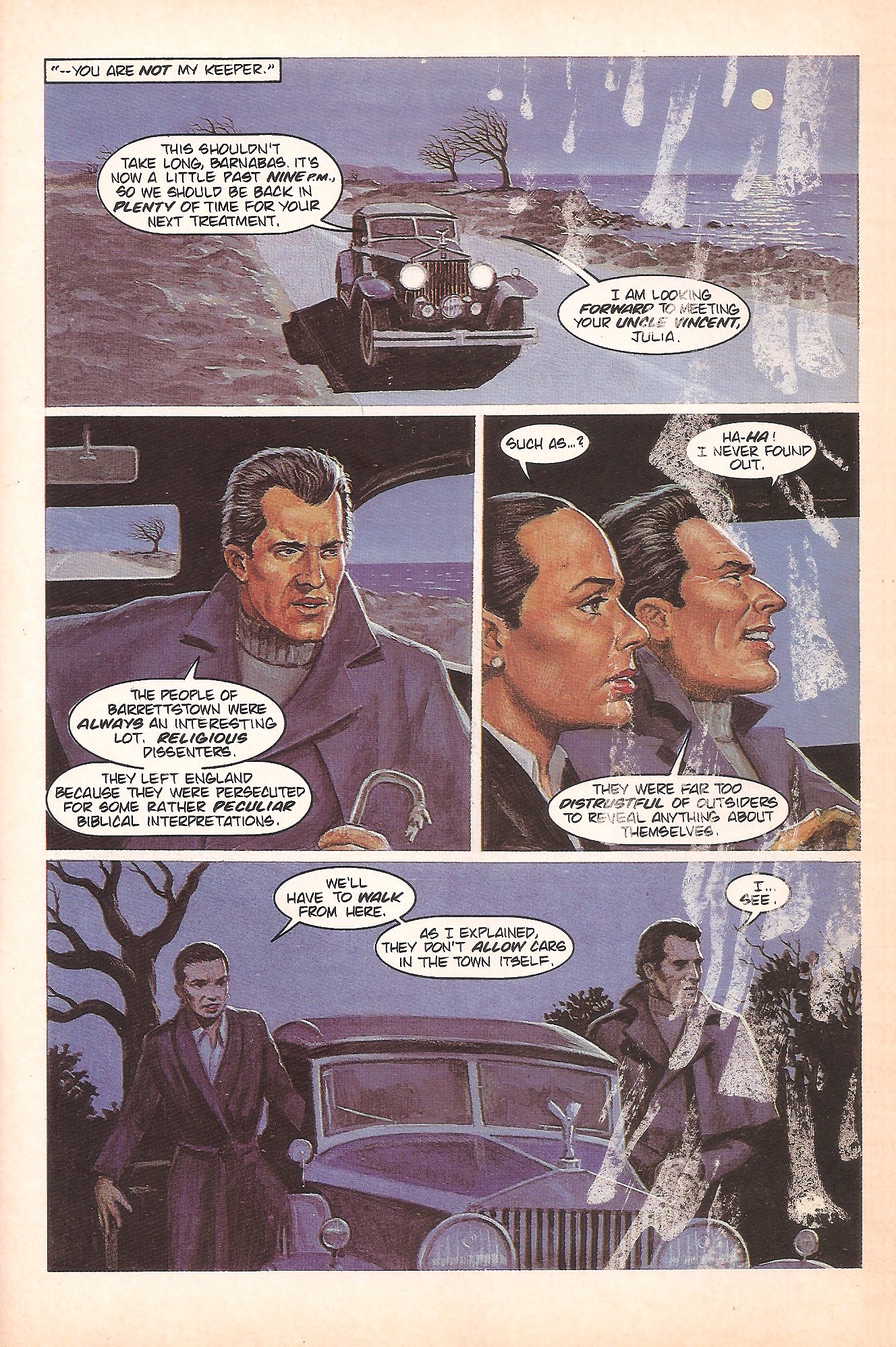 This is about where I really began to lose interest in the book. One panel of a set of eyes watching Julia and Barnabas would have been disquieting and effective. This just comes off as overkill. Plus, the artist reveals way too much of the creatures and does it far too soon, ruining any element of surprise whatsoever. I don't care much for the character design either. I guess that the artist was trying to make them look intimidating and spooky. But they come off looking like Smurfs on a lost weekend.