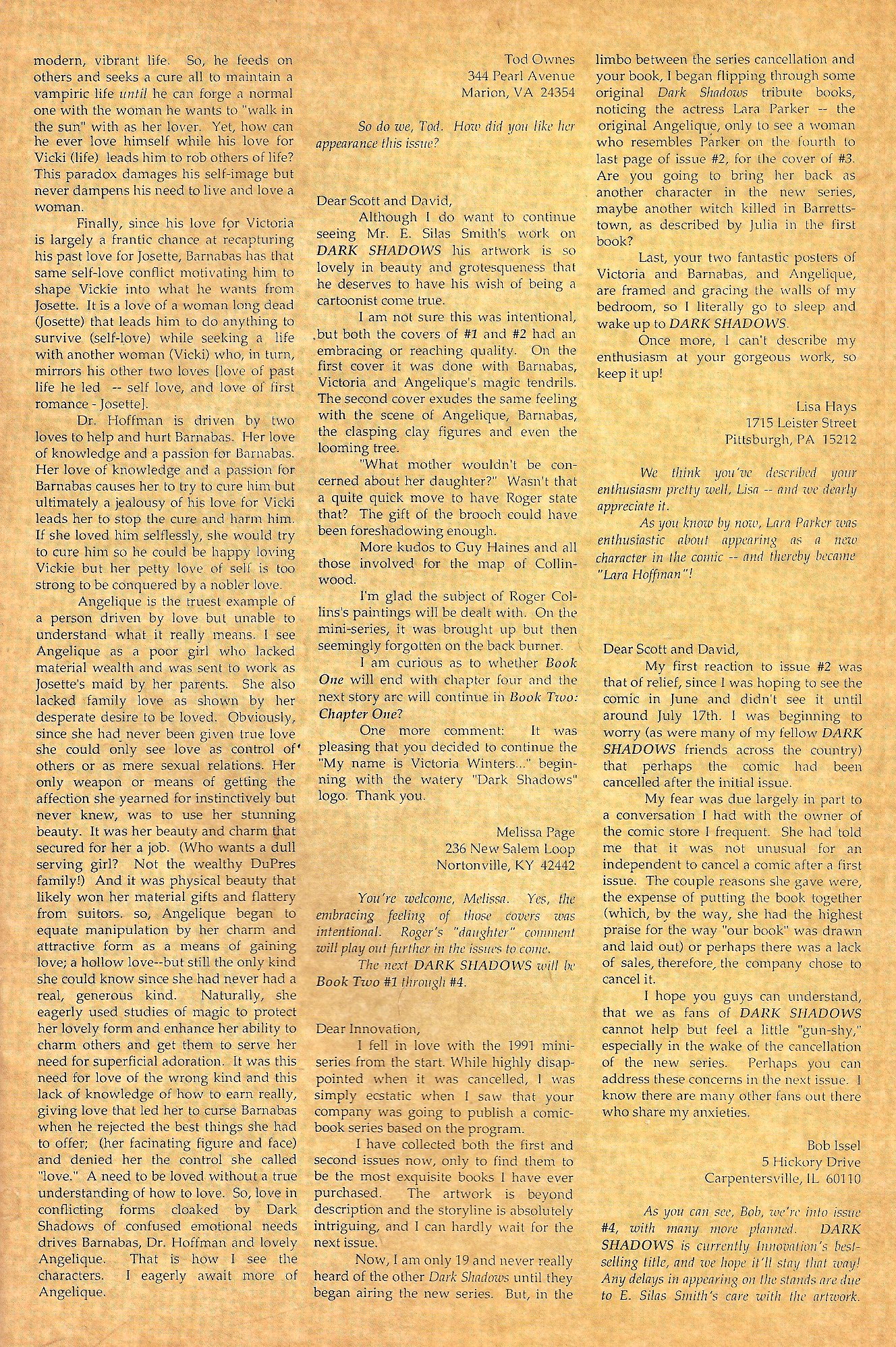 Well, I suspect they might have had to go over the page count because, while the storyline portion of the first three issues of Book 1 were all 24 pages, Issue #4's page count is 27. And I suspect that partly because of that, the letters column was trimmed to 3 pages rather than 5. And here's the first page of that column (twenty-eighth page):