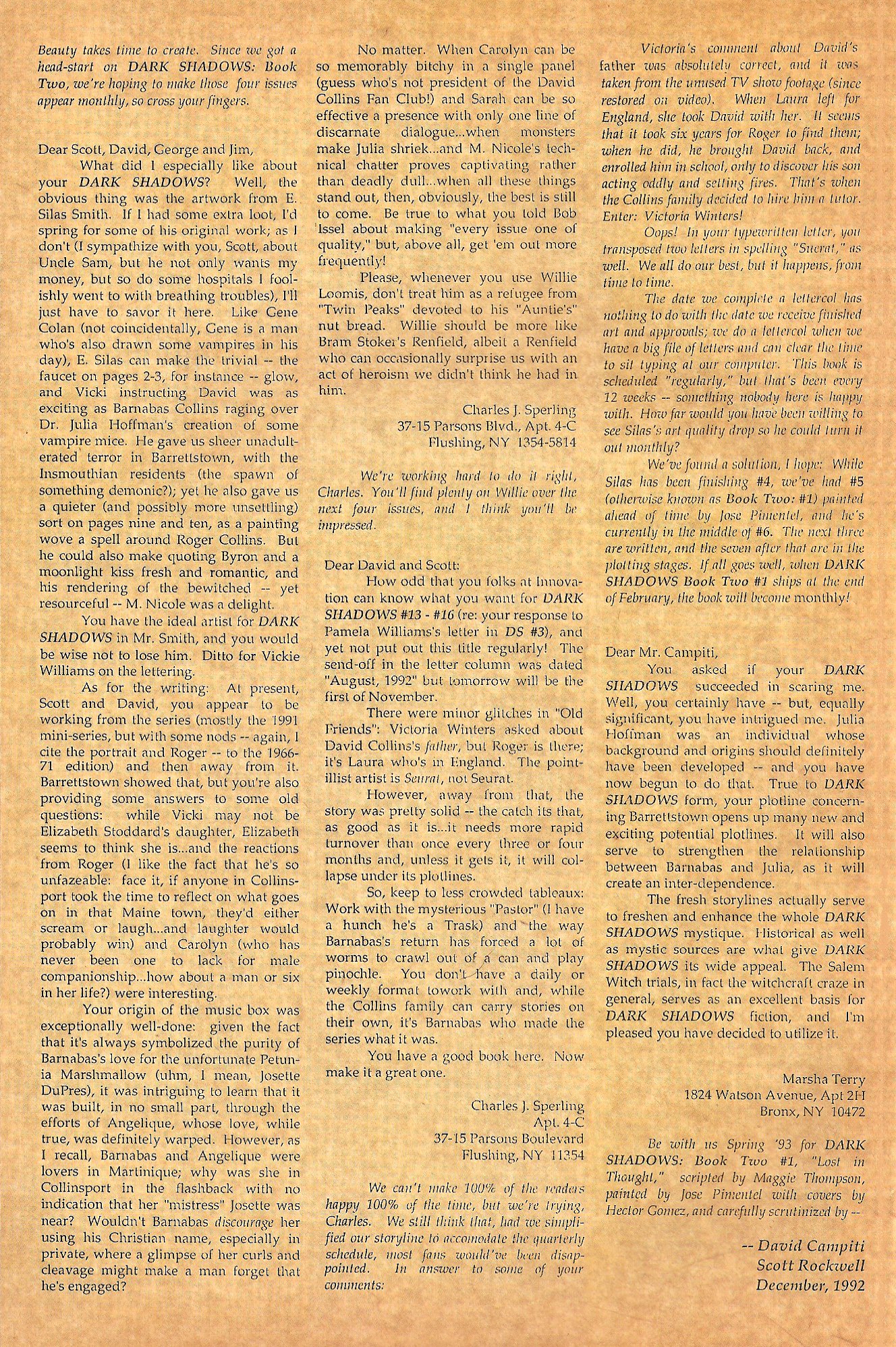 It's interesting that when someone questioned something that they actually didn't get wrong but got right, they didn't defend themselves, yet they bend over backwards to defend things that they did indeed get wrong. When it comes to the former, with reference to Charles J. Sperling questioning why Angelique was in Collinsport without Josette, they could have rightly pointed out that, just as in the daytime series, it's made clear that Angelique arrived in Collinsport with Natalie and ahead of Josette.