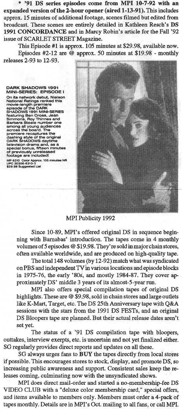 That photo of Barnabas and Vicki would seem to have been the goto photo for the initial promotion of MPI's VHS tape for Episode 1 because it has been used in the comics' ads and the ad SG shared - though it's funny that it's actually used as the cover for the Episode 5 tape. Plus, MPI's catalogues use an array of totally different photos for the Episode 1 tape.