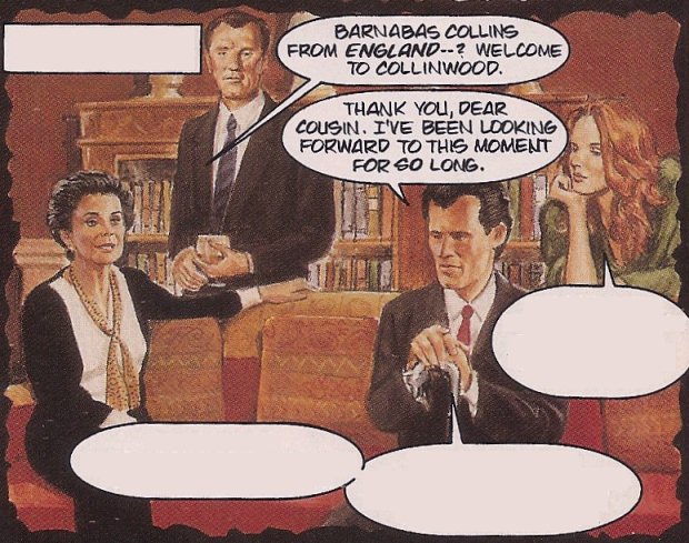 Given what we've seen of the comics so far, it's easy to see how someone might come away with the idea that they were doing something merely based on the '91 Series and/or an alternate version of it. But that's not the case. As co-creator of the comics, David Campiti put it: "A lot of elements in the new series were left unexplained or underdeveloped. Our first 4-parter takes place in the continuity of the 3rd hour of the mini-series, where Julia says 'It's been 10 weeks since we started Barnabas' cure.' A lot can happen in 10 weeks - and it did." Campiti also said that questions examined in the comics are: "How does vampirism work? Why did some people die from a vampire bite, while others didn't? How could Barnabas give Josette a music box in 1790, when they didn't exist yet? Exactly what are the family relationships? What is the secret of Victoria's past? All these unanswered questions, and many other, will be dealt with." They also explore how Barnabas, a product of the 18th century, deals with the 20th century - and how he hopes to convincingly fit in with no suspicion (and that's where we're presently at in Book1/Issue1). But what's probably most important is that Campiti also said the storylines and characters in the first 4 comics (Book1) "read as though we've written 4 excellent hours of the show and dropped them at that point right into the TV mini-series' continuity" with the word "continuity" being the most important word there. Though as we've plainly seen already, despite that claim, the continuity of the comics doesn't always jibe with the continuity of the mini-series. And this is also despite the fact that the comics were also presented as containing what were to be considered new elements of canon within the '91 Series...