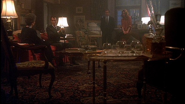 Of course, fans of the '91 DS know that Liz actually delivers today's quote "BARNABAS COLLINS FROM ENGLAND--? WELCOME TO COLLINWOOD" in the foyer -