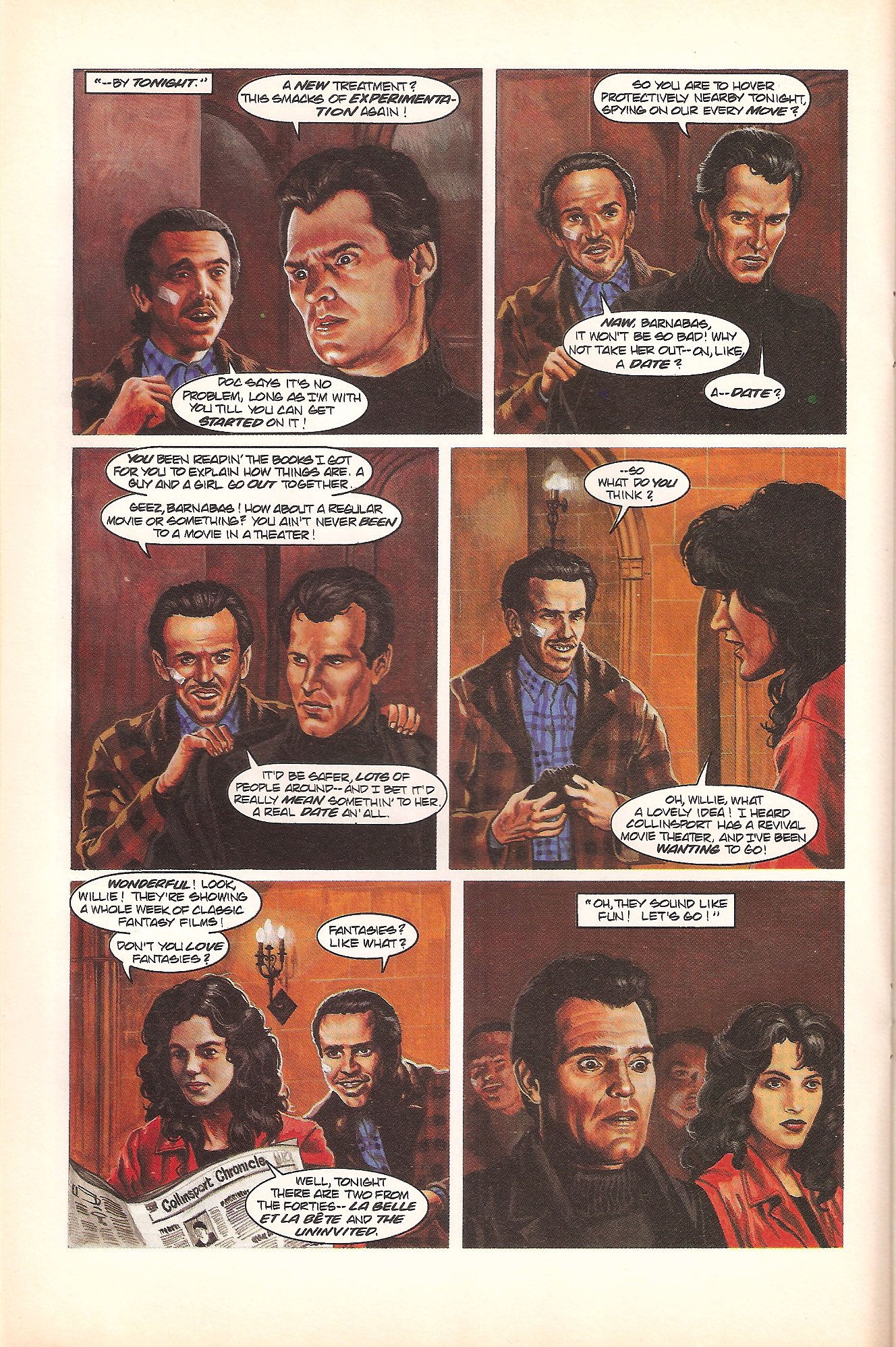 Joe expresses a similar sentiment in '91 Series' hour 4 in the scene in which Carolyn checks on him out on Collinwood's terrace. And as we'll see as we make our way through Pages 18 and 19, Maggie Thompson picks up on that scene and fleshes it out in satisfying ways. Though as I mentioned before, I do have a quibble in that in the scene on the series, it is strongly implied that Joe has been continually haunted by his time spent being treated at Collinwood and he can't wait to get away because he feels trapped there, but Book 2 has this panel in Issue 1 -