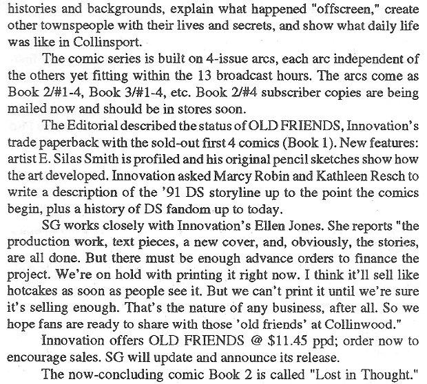 And here's what little October 1993's SG #66 shared about Book 2 and an update on what was happening with the Old Friends trade paperback: