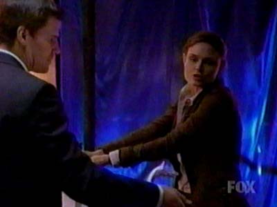 In tonight's episode of Boreanaz' new FOX series Bones, he took the baddie's wolf's head cane away from him (it turned out to be a murder weapon) and starting wielding it around in an effort to defend himself. The whole scene was just too, too wild, not to mention surreal for this DS and Buffy/Angel fan.  :D  Unfortunately, though, I didn't tape the show or else I'd share some screen captures. But there's always the repeat...