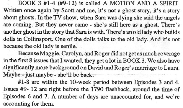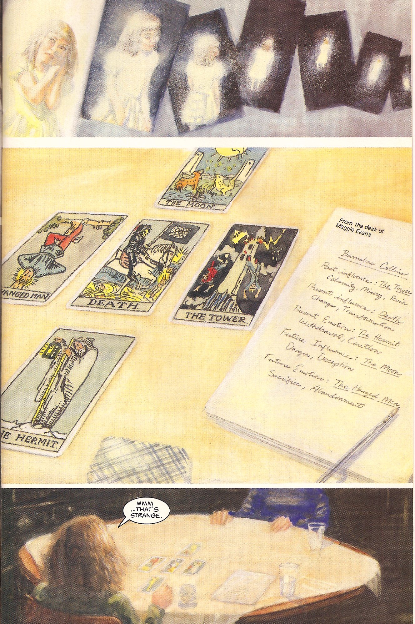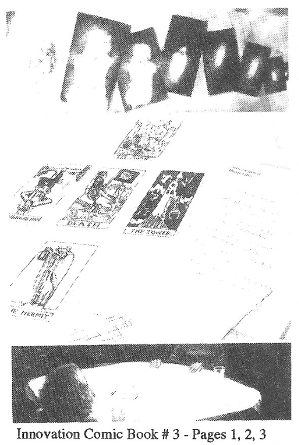 These readings are based on the tradition of the Celtic Cross (a way of reading Tarot that became popular between around 1880 and 1900), as described in the books of Eden Gray, Rachel Pollack, and other Tarot authorities. What the Innovation comic writer did with these cards in terms of their positions is quite odd but then again--so is a lot in these books!