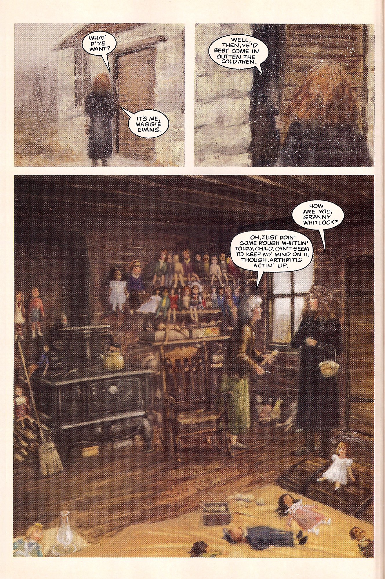 Maybe it was intentional, maybe not but this aspect of the story reminds me of one of the Gold Key comics. Both featured an old lady on the outskirts of Collinsport who had a collection of dolls that seemed to animate themselves. Granny Bumpers, the old lady in the Gold Key story turned out to be Angelique. I wonder if this story was also headed in that direction.