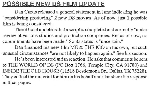 But to satiate your possible hunger for reading some of that issue, here's what SG #66 had to say about DC's proposed movies based on the '91 DS Series. Even though nothing ever came of the project, it's still fun to read how it progressed and how it was publicized: