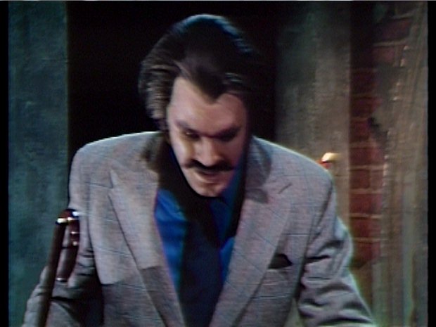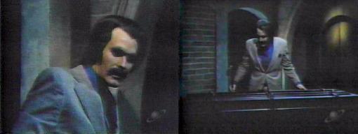 Yaeger enters a room--this has to be another building on the Collins estate, he muses, the only one that could have a cellar this size is Loomis house.He spots Barnabas' chained coffin and runs his hands over it. Well, well, he wonders, what dark secret is Will Loomis keeping from the rest of the world? I must find out, decides Yaeger--it just might come in handy someday. Using nothing more than his hands, he begins to remove the chains from the coffin!