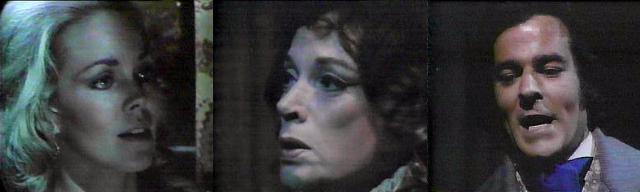 Julia leads Catherine down the corridor to the cursed room, touching her shoulder once before they arrive. Go on, says Catherine, open the door. Julia finds, however, that her key does not work. There's something wrong, Catherine--I'm certain this is the right key. "It is the right key, Julia," says Morgan's voice, coming from INSIDE the room, "but the lock has been changed." Morgan! protests Catherine. Yes, Catherine, he says proudly.We see him on the other side of the doors--I'm in here!. Come out of there at once, orders Julia. It's too late, says Morgan--Quentin has the only key to the new lock, and I made him promise to give it to no one--"I'm taking your place, Catherine--I wouldn't have it any other way." Julia looks at Catherine, who gazes back, both in despair.