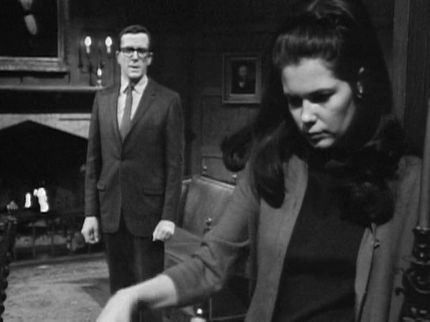 Collinwood - Vicki comes out of the kitchen, quietly closing the door. She sneaks upstairs, but Roger calls her from the drawing room. You startled me, she says, coming back down. I'm sorry, says Roger. I didn't know anyone was up this late, she says. I was worried about you, he says--won't you come in for a moment. She joins him, walking slowly--you knew I'd gone out? she says. Please don't think I was spying on you, he says--I thought of something else that you ought to know--he prepares another drink--I went up and knocked on your door, and to my surprise, no Vicki! I couldn't sleep, she says, I went for a walk. You must be exhausted if you've been walking all this time, he chuckles grimly. I wasn't walking all the time, she says, I went to Maggie Evans' house. (uh oh) Did you? he asks--and how is Maggie Evans? She's fine, says Vicki--you remember, she called me earlier this evening. Yes, I seem to remember, you spoke at some length, says Roger--something to do with the portrait of the Hanscomb girl? That's right, nods Vicki. Then is that what you discussed this evening? asks Roger, knowing she's lying. Yes, says Vicki, she said she found out something new about it, but apparently she was wrong. What a shame, says Roger--then your visit was entirely wasted. Not really, says Vicki, I like talking to Maggie. So do I, he says, I must really get to know her better. She's lots of fun, says Vicki, it's nice to talk to someone who has no big problems to solve. Yes, says Roger, sipping his drink, I can imagine. He drains the glass. You said you wanted to see me, she says. It's not important, he assures her. What was it about? she asks. Out minds run in the same channels, I was about to suggest to you that you call Maggie Evans. What for? asks Vicki. To see if she can throw any light on the portrait of the Hanscomb girl.That is a coincidence, agrees Vicki. I told you, laughs Roger, our minds seem to work alike. I think I'll go to bed tonight, says Vicki--I'm quite tired. You should be tired, agrees Roger, after that long walk. She nods and bids him good night. He watches her go upstairs. Pleasant dreams, Miss winters he says, taking another slug of his drink.