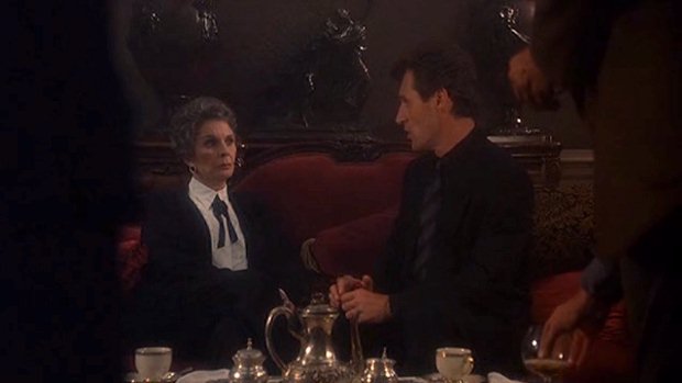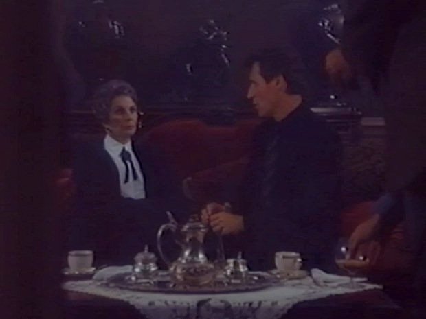 Julia knocks at the door of Collinwood. Quentin, drink in hand, answers and invites her in. You're taking quite a risk, he remarks. Was Barnabas here?--is he gone? she asks. Yes, answers Q. And Edward? she adds. He's in Bangor, says Q, and very curious about you, so you're lucky. They enter the drawing room; he closes and locks the door. I didn't feel like staying at the rectory, says Julia, I don't know why Barnabas wanted to see you. . .that's not true, I do know, whatever he wanted had something to do with your houseguest--I hope you will be frank with me. "In other words, you want me to tell you exactly what he said," says Q, smiling slightly. It's very important, says Julia--Barnabas must not change his plans. "What are his plans, Dr. Hoffman?" asks Q. She turns away, not replying. I can't tell you, she says. You want me to spill everything, says Quentin teasingly, but you're going to tell me nothing--there seems to be something basically unfair about that. All right, don't tell me, says Julia, I have heard enough about it from Barnabas to guess--"I've been through this with him before, you know," she says resignedly--"He'll never forget Josette, he will ALWAYS be hunting for her."