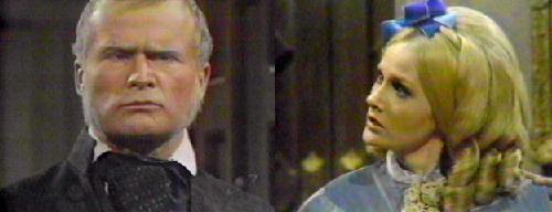 Nathan explains that he told Joshua that he and Millicent love each other, but Naomi is sure this wouldn't change her husband's mind. I used to be fond of you, she says, and would have been glad to see you marry Millicent, but now, after the way he deceived Millicent and testified against Victoria Winters. . . Nathan says he didn't intend to deceive Millicent and the testifying was his duty. He tells her he does care about Millicent, and she says the young woman hasn't been mentally sound of late--too many shocks. She suggests they wait to marry, but he refuses--if Joshua gives his consent, they're getting married immediately! She goes to speak to Joshua, who had taken a gun from a drawer and has been leaning against the mantle as though it were holding him up. He brushes past his wife with a curt, "Not now, Naomi," when she asks if he's really consenting to the marriage. After he leaves, she takes a much-needed glass of sherry.