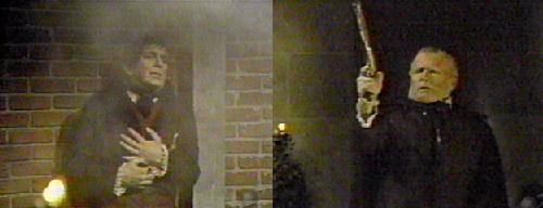 Joshua returns to the Old House basement. He finds the pistol sitting on top of his son's coffin. Barnabas appears from the shadows. Joshua is disappointed. You were never a coward, he says. I'm not one now, and Barnabas. "By your own acts ye shall be known," Joshua reminds him. Barnabas explains that he has his memories, but the curse won't allow him to die--he has been cursed with eternal life. Joshua can't buy this. The gun can't kill me, insists Barnabas. Joshua denies this. Barnabas wants to go, and take Ben with him. Joshua fears Barnabas will turn on Ben and continue to murder; near tears, he demands to know how his son can expect him to permit this, and Barnabas, his voice harsh and miserable, responds, "Because I am a vampire! I must have blood!" More madness, says Joshua, unable to look at his son--ignorance and superstitious tales! Now Joshua knows everything--I am compelled to this terrible life, says Barnabas. My son, my son, commiserates Joshua, but Barnabas says he is only aware of his father's pain. Let me escape, pleads Barnabas--I'm an animal, with instincts to kill, no longer your son. Joshua, in agony, reaches out to Barnabas, but Barnabas orders him, "Don't touch me!" Josh, face filled with misery, takes the gun in his hand. I must do this, he says, and adds, "Forgive me, dear son." He shoots Barnabas, who clutches his chest.