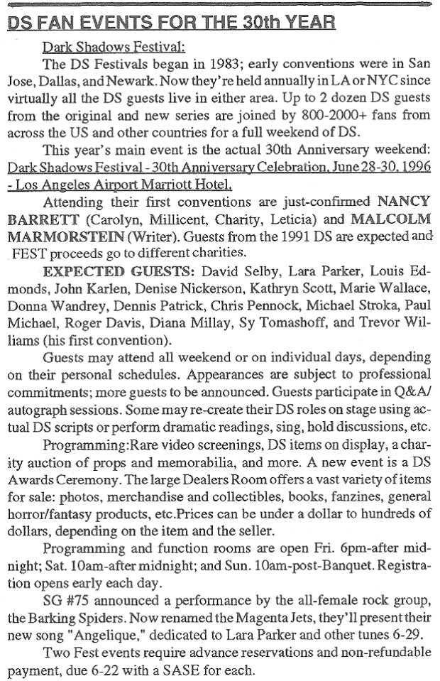 Memories Of Days Gone By, a celebration of the DOOL's 30th anniversary.