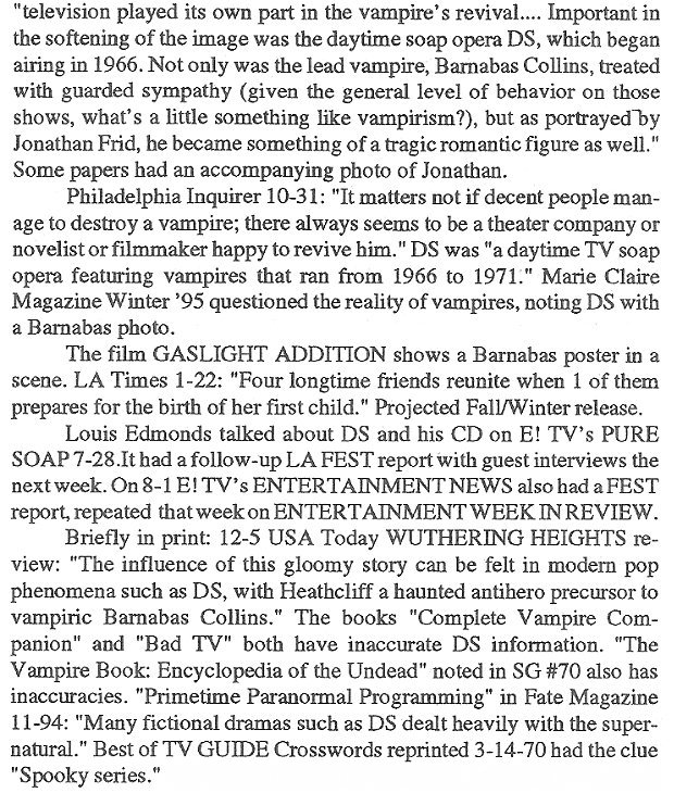 And the other day after I'd put in The Beginning's Collection 6, Disc 4 and gotten a capture from Ep #206 for the Everyone In Collinsport's Favorite Word Slideshow, for the first time I checked out several of the extras on that disc. One that I watched had info that I thought was very interesting, and it's something that this article reminds me that I wanted to post about. We constantly read how teens were a major audience for DS, so much so that at times one would think teens comprised the majority of the show's audience (and sometimes writers even use that to demean DS as something of a "less than" show because of it). However, the Dark Shadows Syndication Promo Reel includes this ratings info: