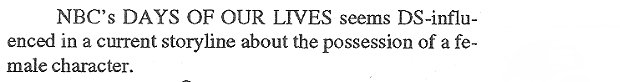 I definitely take exception to the author saying DS had "atrocious production values" - did they watch ANY of the other soaps that were on at the time? Now, too many of those had atrocious production values (I'm pointing at you in particular,