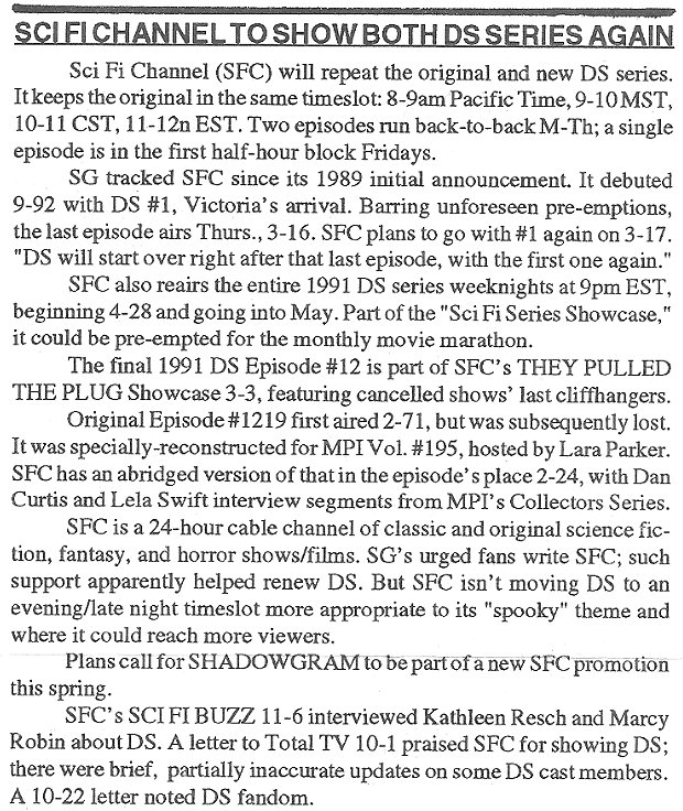 I've told this story before, but I reconnected to DS in a somewhat similar way to the author. It was almost a decade before DS first ran on Sci-Fi, and it wasn't while channel surfing, but it was in 1985 while casually browsing the TV Guide one day when I was on vacation from work and noticing that DS was actually airing on an independent station in my area. I couldn't believe it. I'd already missed that day's ep because it had aired at 11am, but the next day I was firmly in from of my TV to see if it really was true that DS was back on (I was afraid to accept it until I saw it with my own eyes