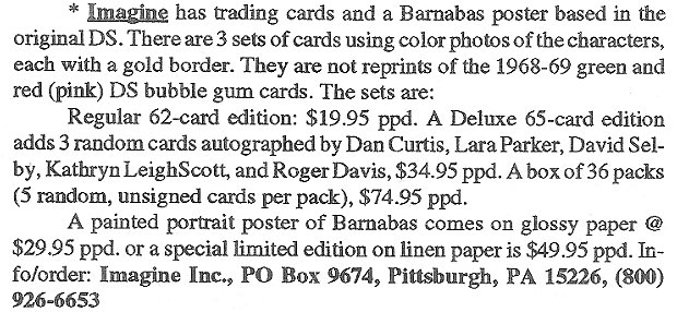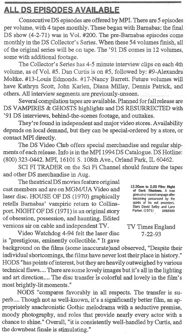 SG #69 - Planned for fall release are DS VAMPIRES & GHOSTS highlights and DS RESURRECTED with '91 DS interviews, behind-the-scenes footage, and outtakes.