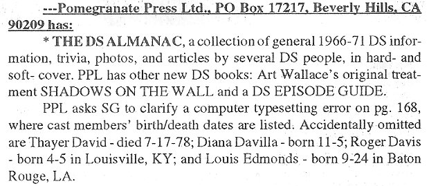 Thankfully most of those "computer typsetting" errors were corrected when the Millenium Edition of the Almanac was issued in 2000 - but that version still leaves Diana Davilla off of the list. But then, I suppose it was just another "computer typesetting" error...