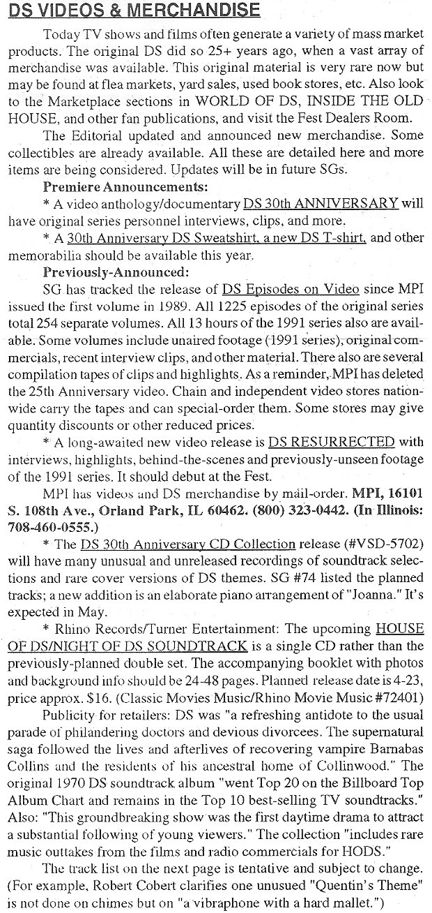 For some reason SG #75 combined the Video and Merchandise sections into one:
