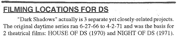 And speaking of the HOUSE OF DS/NIGHT OF DS SOUNDTRACK, that track list is incorrect. For example, there are no "Daphne's Room" or "Party Music" tracks in the hoDS section or "Alex At The Greenhouse" or "Trouble In The Tower" or "Quentin's Theme (Chimes) (unreleased)" or "Quentin's Theme (Turmoil) (unreleased)" or "Quentin's Theme (Saxophone) (unreleased)" or "Love Theme From Night Of Dark Shadows (Piano) (unreleased)" tracks in the NoDS section. However, in the NoDS section there