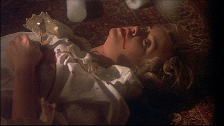 -  gets replaced with a clip of Carolyn's hands caressing Barnabas' bare chest -
