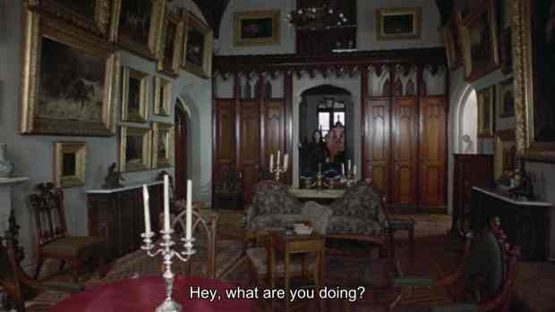 And speaking of the footage, yes, the timing of the figure coming into frame at the same time the voiceover talks about the man being reincarnated to take his revenge does works well. But what about the shot of Collinwood being so jittery before that? I never remembered the shot of the house being so jittery in hoDS and that's because it isn't. In fact, most of the footage that's in the NoDS trailer isn't even in hoDS, as one can see here with the following video of hoDS Scene 81: