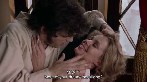 Now, we know that next up on the DVD/Blu-ray there's dialogue that shouldn't be there, and of course it all shows up in the subtitles - Charles' lines are scripted as, "For more of your dreary moralizing? You try my patience, brother." - however, in the 97 and 129 minute versions of the film, as scripted, first Charles delivers, "For more of your dreary moralizing?" - but that shows up in the subtitles as -