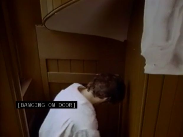 Continuing along with the subtitles and closed captioning for Scene 85, rather than the dialogue that appears in the DVD/Blu-ray that shouldn't be in the 94 minute version of the film, the closed captioning on the VHS acknowledges more banging on the door -