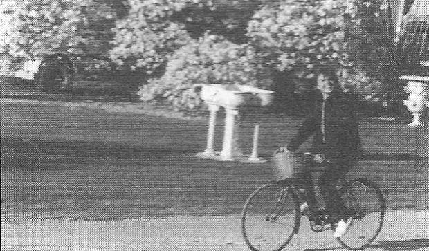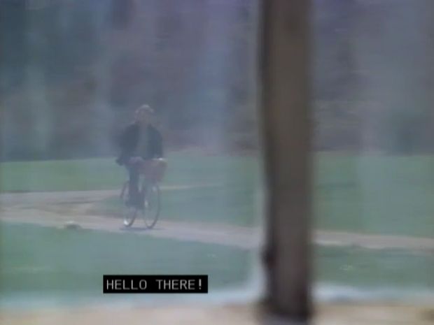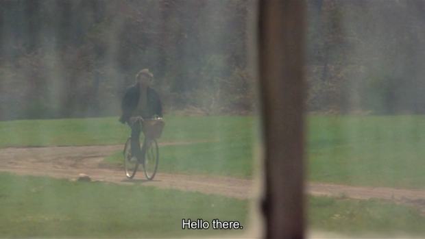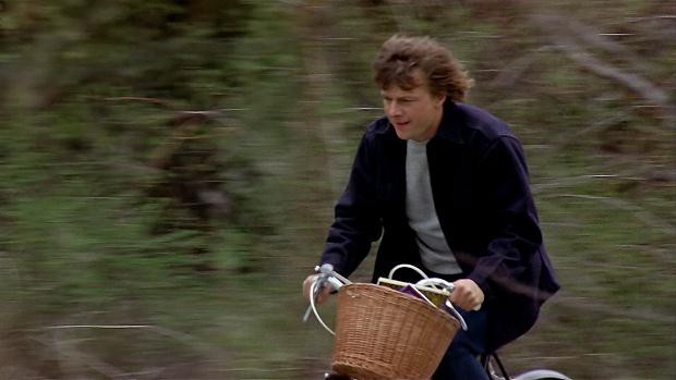 And so far as any differences in the directions and descriptions go, the greenhouse isn't actually seen in the background as Alex rides his bicycle - and Alex is never actually seen in close-up, only medium or wide shots such as these: