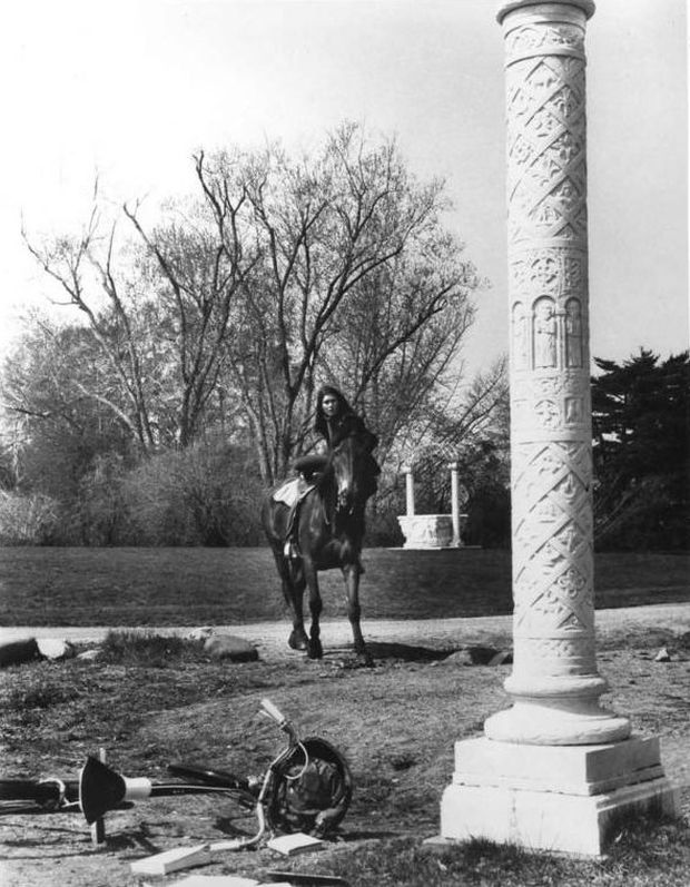 - a low angle shot of him on the ground - and we don't actually see Tracy riding her horse in the background because there's a full on shot of Tracy riding across the field toward the greenhouse -