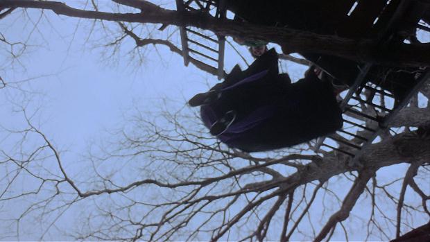 - to watch things that only happen in the 97 minute and 129 minute versions of the film (and also more on that in the future post) - and when it comes to Scene 131 (which I honestly believe should be numbered 130 - but more on that in another future post), while Angelique's body is hanging up in the tree, and while we do see the main characters exit the shot, the men do not descend the ladder to the ground because in fact the two men atop the platform remain and as the main characters move toward Collinwood, one of men moves to one of the ladders -