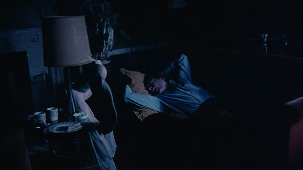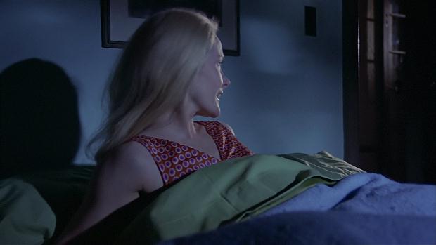 - the mist-like vapor that envelopes Alex' body. So, the camera doesn't actually do a slow pan of the living room because, as we could see in the above captures, the camera actually remains stationary and focused on Alex asleep on the couch - and the camera also doesn't do a truck down the hallway, and we never actually see Claire and Alex through the bedroom door and asleep in their twin(!) beds (especially considering we've already seen Alex asleep on the couch in the living room) - and the camera doesn't continue to truck in as it enters the room.