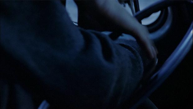 - and smoking a cigarette - and when Quentin reaches him, obviously he doesn't have to grasp the car door to get Alex out, Quentin simply kneels beside Alex, who tells him -