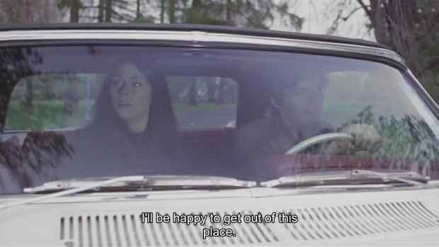 Tracy gets out of the car and nervously begins to pace about. Then crossing back, she reaches in and honks the horn. Trying to decide what to do, she waits a few moments, then crosses to the front door.