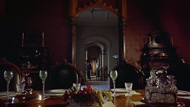 HOLD FOR A MOMENT on the empty scene, then, almost imperceptibly, a half open door begins to move.