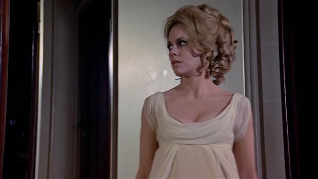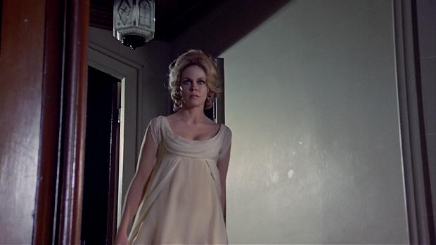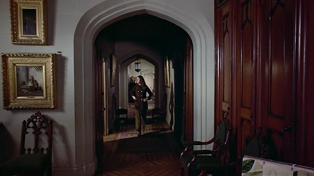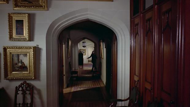 From the gallery, Tracy can be seen coming along the corridor TOWARD CAMERA. Suddenly she stops, noticing Quentin's canvases stacked against the wall near the wall to the bedroom. she starts toward the steps.