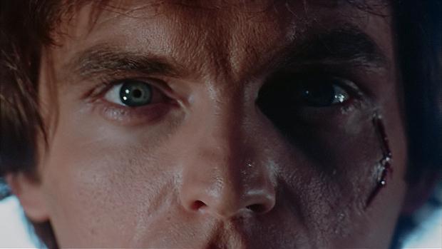 as he comes up the stairs TOWARD CAMERA, PAN WITH HIM as he picks up his canvases. Then SLOWLY TRUCK IN TO HIS CLOSE-UP. He looks around, as if sensing a pre- sence in the house. HOLD HIM as he crosses to the doorway and than, carrying his paintings, EXITS into the gallery.