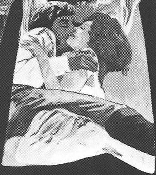 It's interesting, though, that Angelique's arm is on the outside of Charles' arm in the poster's artwork, yet it's on the inside of his arm in the actual still. It's also interesting that Angelique is semi-transparent for the color version of the poster, implying she's a ghost, yet she's human in the actual still and doesn't appear transparent in the B&W version of the poster...